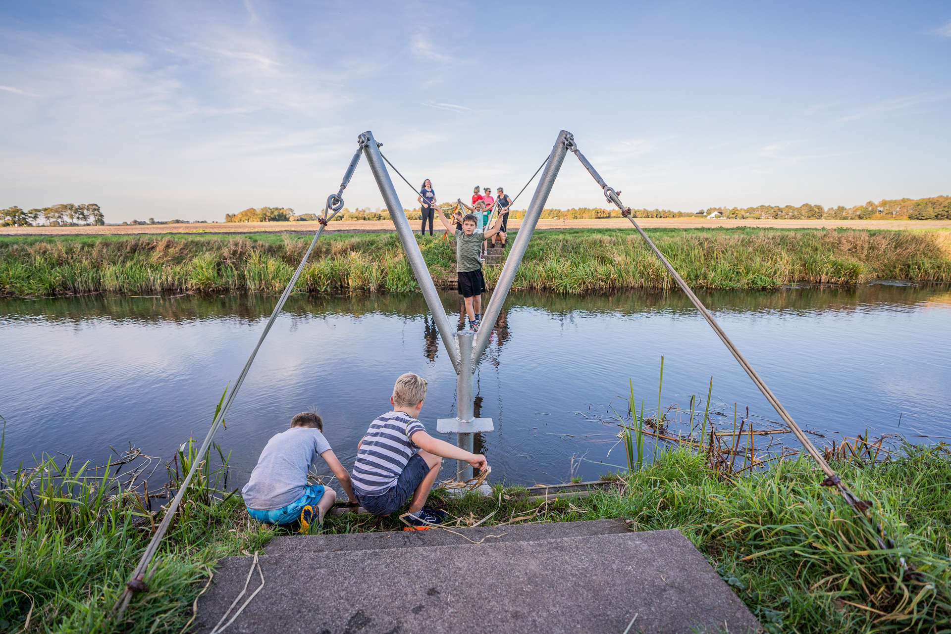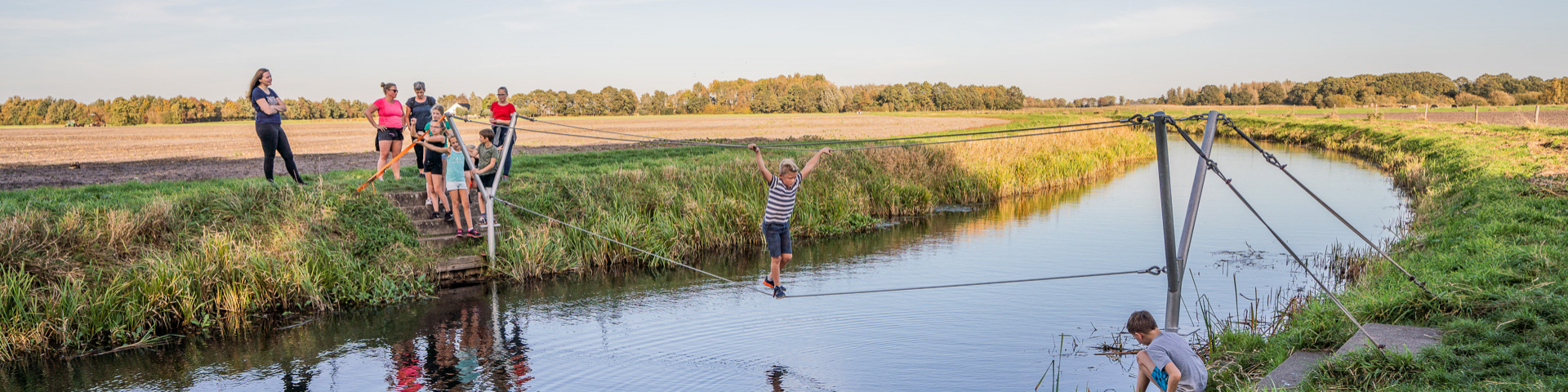 Kleintje survival is actief genieten in de Hunzevallei. Een combinatie van een kanotocht op rivier de Hunze en een wandeling afgewisseld met diverse wateroversteken zoals de touwbrug en de slingerpiramide. Avontuur voor jong en oud!