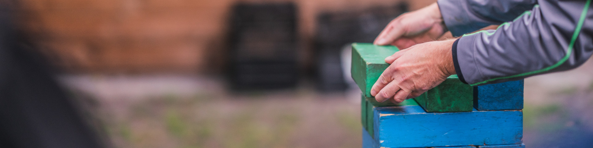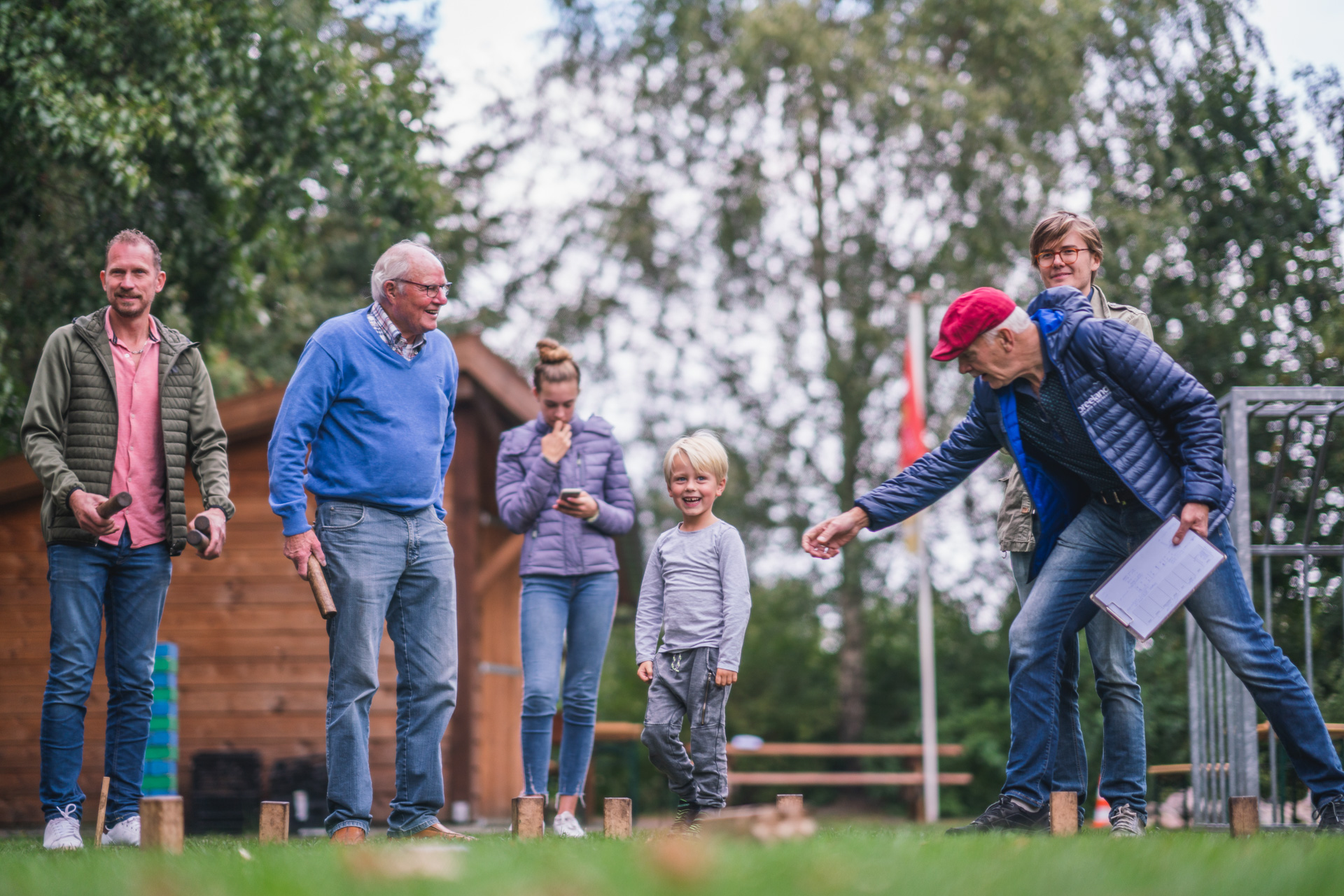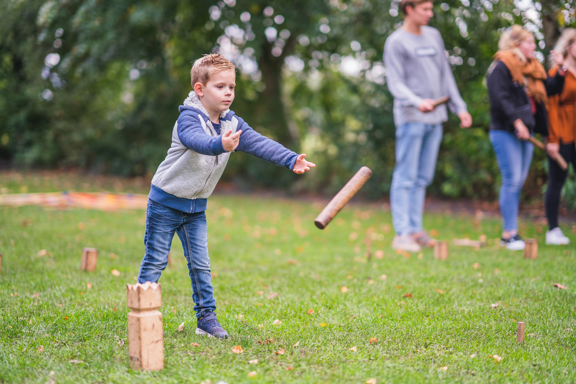 Tijdens kubbs gooien twee teams in een klein speelveld met een werpstok elkaars houten blokken om. Om te winnen moet daarna de koning nog omver.