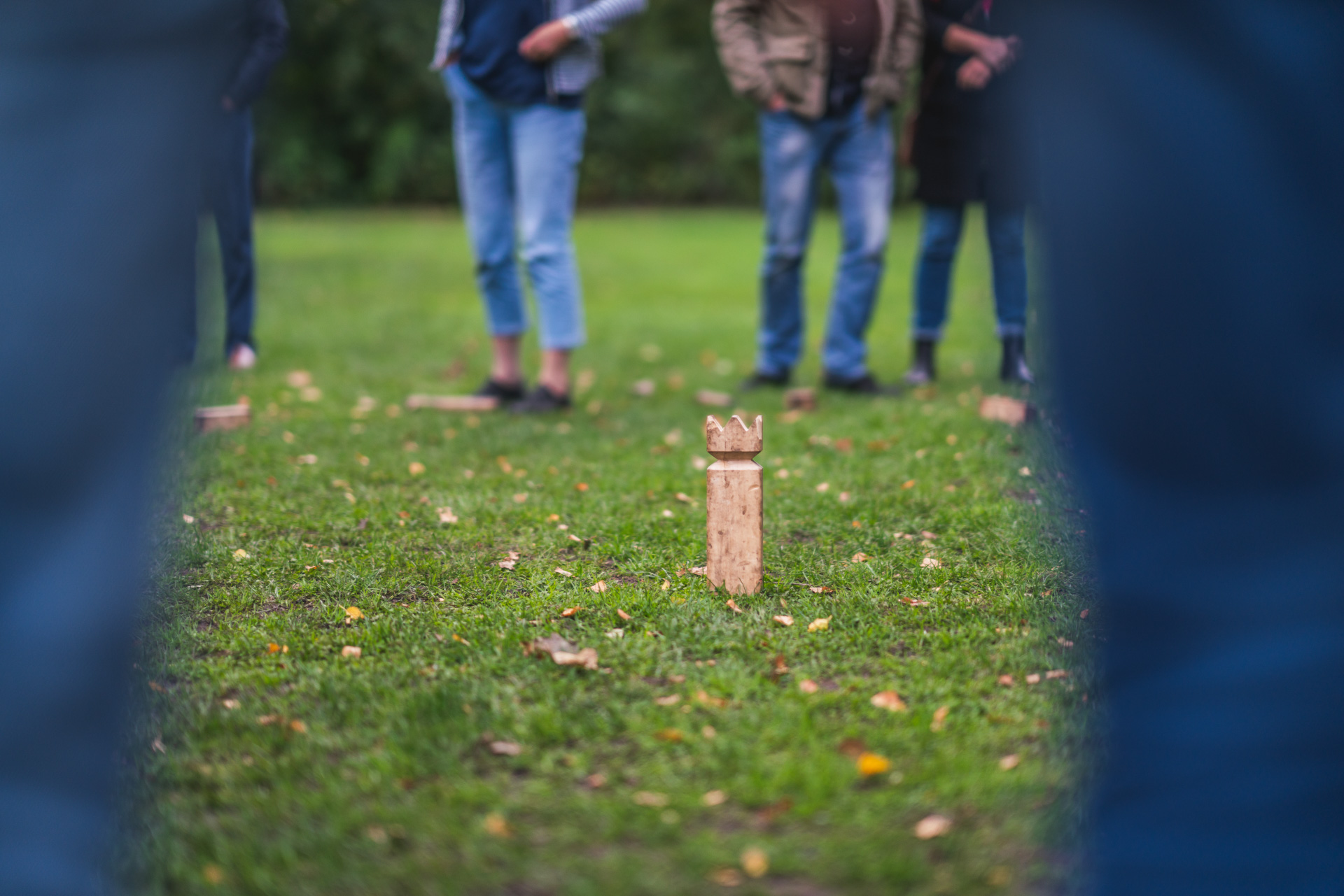- Tijdens kubbs gooien twee teams in een klein speelveld met een werpstok elkaars houten blokken om. Om te winnen moet daarna de koning nog omver.